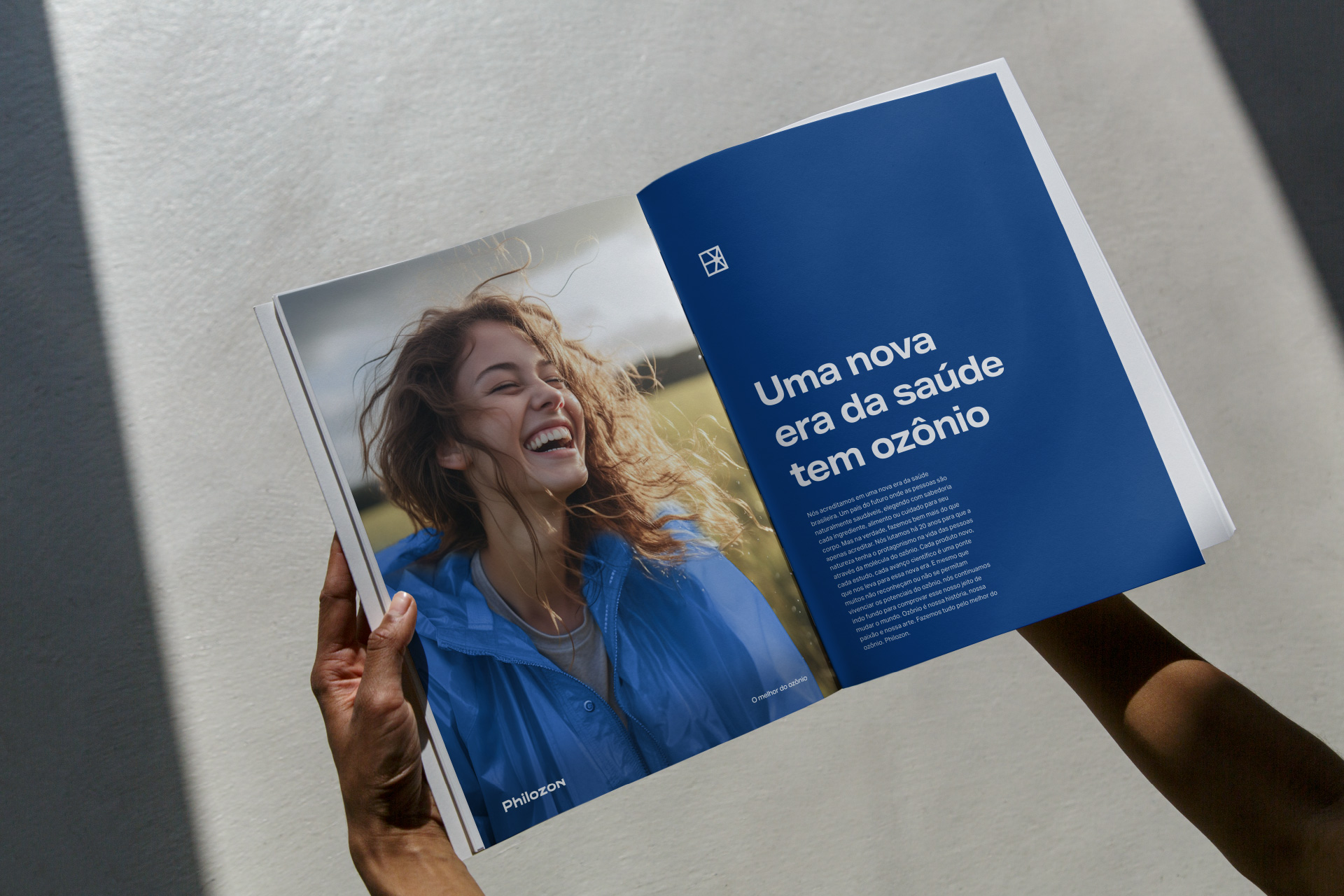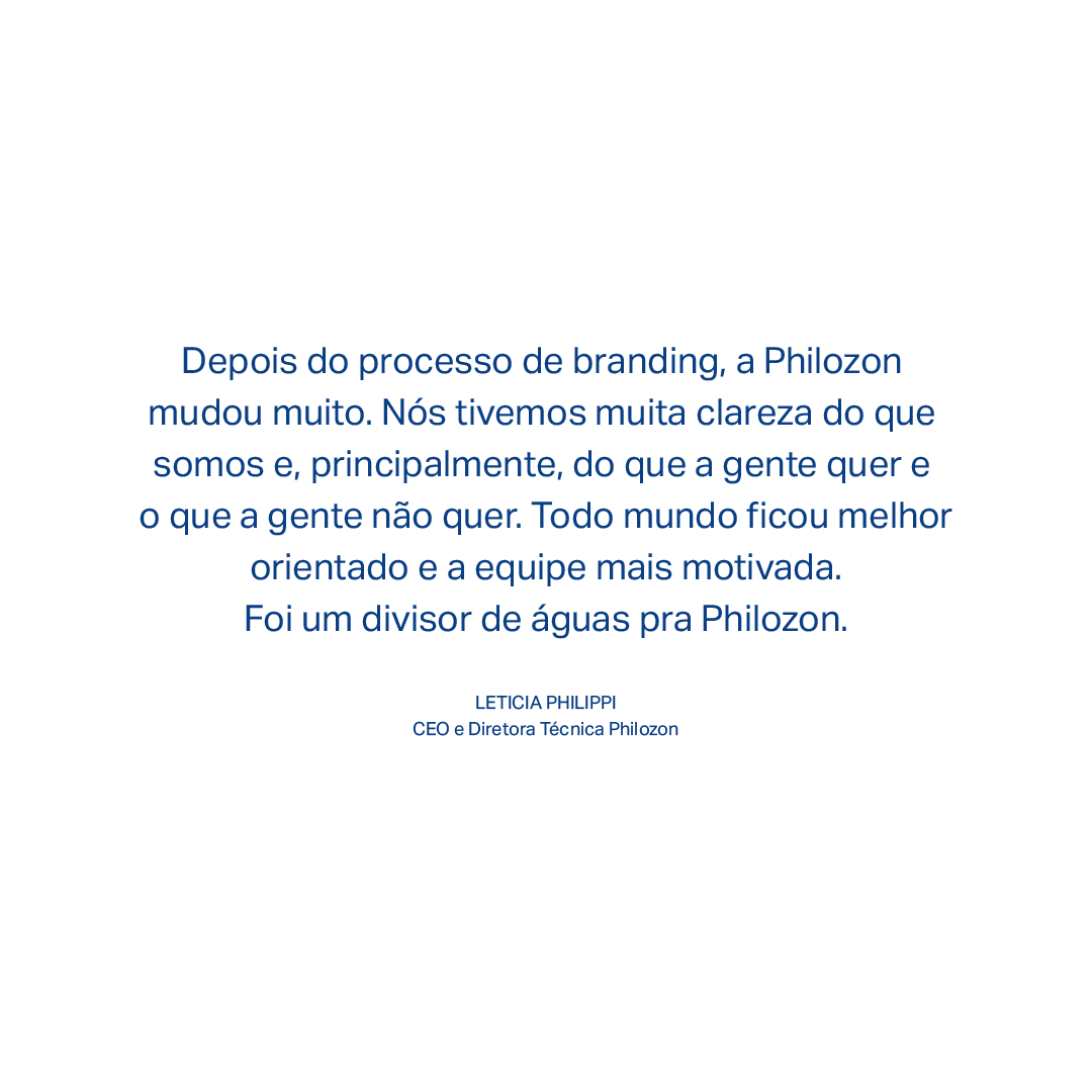 Comunicar de forma inspiradora e ativista a causa da molécula foi o grande guia para o discurso da marca. Com o slogan “O melhor do ozônio”, a Philozon conecta todas as esferas onde a marca atinge. Seja a Philozon aprimorando técnicas e tecnologias pelo melhor do ozônio ou um profissional conseguindo o melhor do ozônio para aplicar em seu paciente.