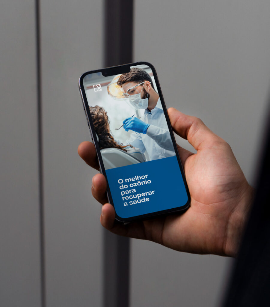 A marca passa a assumir uma personalidade humanizada, atributo identificado em cocriação com o cliente. O logotipo foi realinhado e recebeu ajustes finos para tirar o aspecto frio e tecnológico, dando lugar a traços mais orgânicos. Isso tudo para contribuir com o posicionamento da marca, de oferecer o melhor do ozônio para a saúde e bem-estar das pessoas.